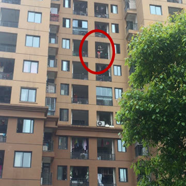 “光腿男”翻到阳台边缘处 情绪失控欲跳楼