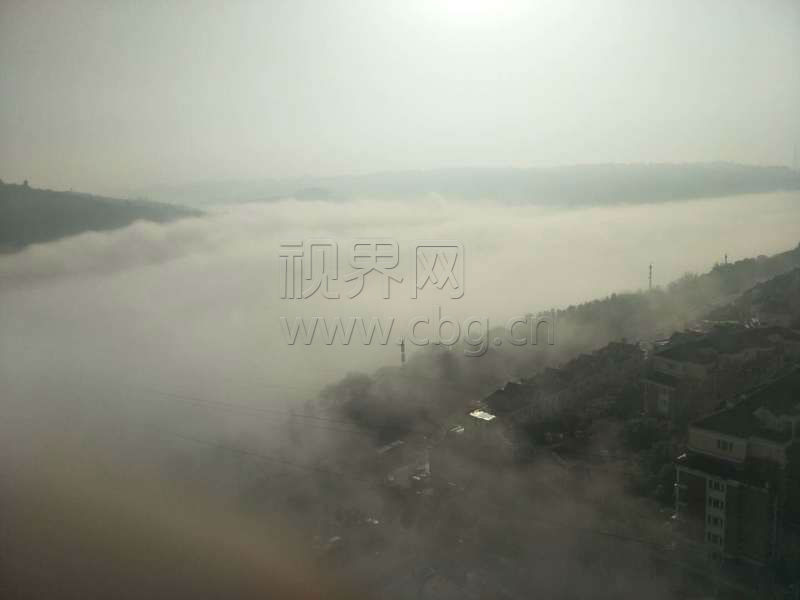 早上六点左右,江津城区的平流雾开始慢慢出现。长江江津段沿岸的高楼、山坡的低矮部分逐渐被雾气笼罩,而上半部分则露在云层之上。出现了平层雾气被“冲破”的绝妙景象。