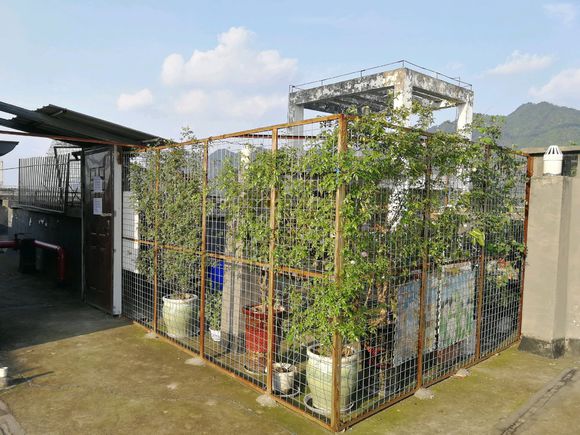 楼顶被人用铁丝网圈占养花 苦了楼下业主