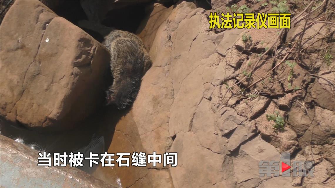疑似经过搏斗 一只果子狸被卡在石缝里