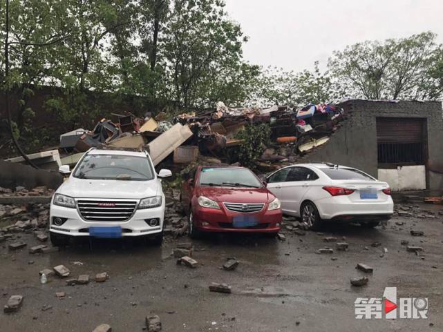 大雨致围墙倒塌 3辆私家车秒变“运砖车”