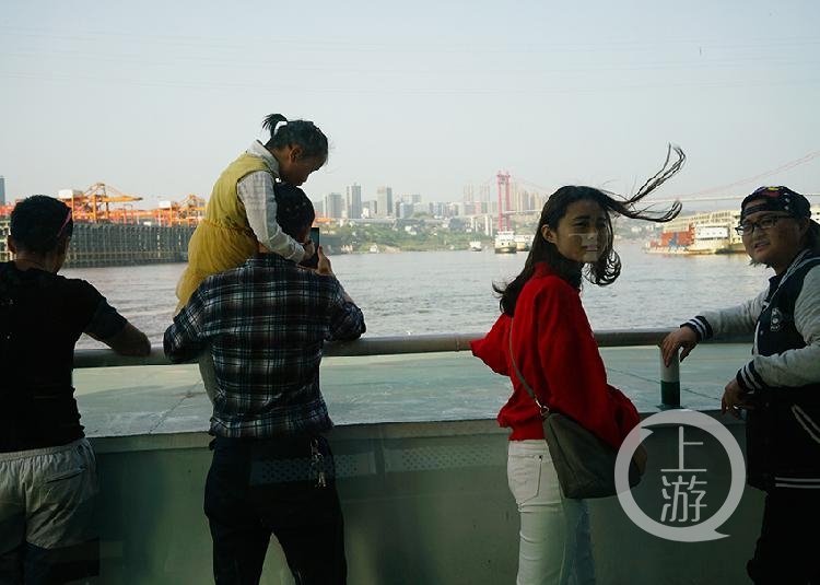 作为江边上的城市,轮渡可以说是最具重庆特色的交通工具,也是很多老重庆的生活记忆。图为轮渡上的游客用手遮挡阳光。