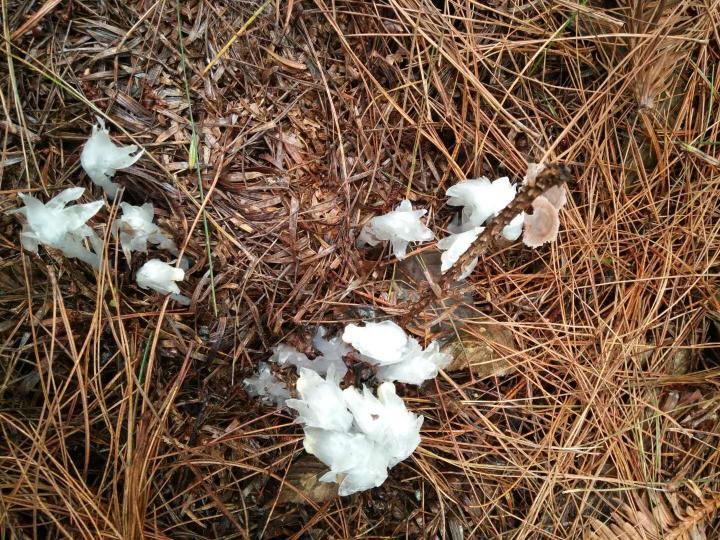 记者从隆先生提供的图片看到,这种植物生长在枯枝烂叶中,整个植物体像水晶一样透明,连在一起像金针菇。如果细心的你,还可能发现,单株的这个植物还有点像植物大战僵尸里的寒冰射手。