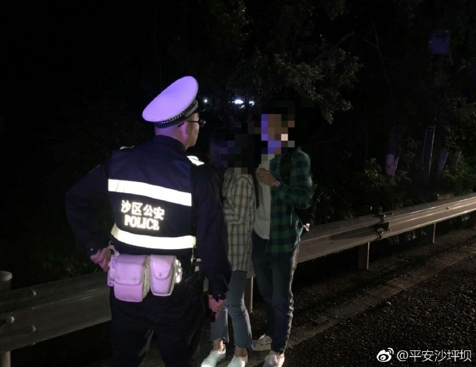 沙区110快处队民警巡逻至此发现情况后,立即上前阻止,并对他们的行为进行教育批评,为不影响周围交通以及两人生命安全,民警开车将他们送至就近公交站。