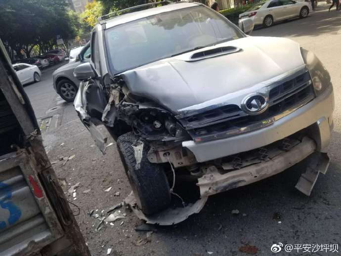 沙区110快处队民警在周围巡逻时发现该情况,立即上前处置。因越野车受损严重,无法移动,民警在车后摆放好三角警示牌以防二次伤害,并联系拖车及时将受损车辆拖走,快速恢复道路畅通。