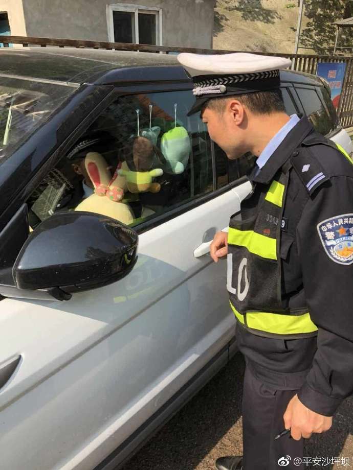 来自平安沙坪坝官微的消息:4月19日,沙区110快处队民警在凤天大道进行交通纠违时,发现一辆白色私家车驾驶室车窗上沾满了布娃娃,过往司机和行人忍住不好奇驻足观望。