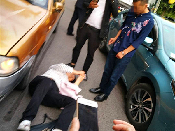 女子被车撞伤 倒地不起忍痛“玩”手机