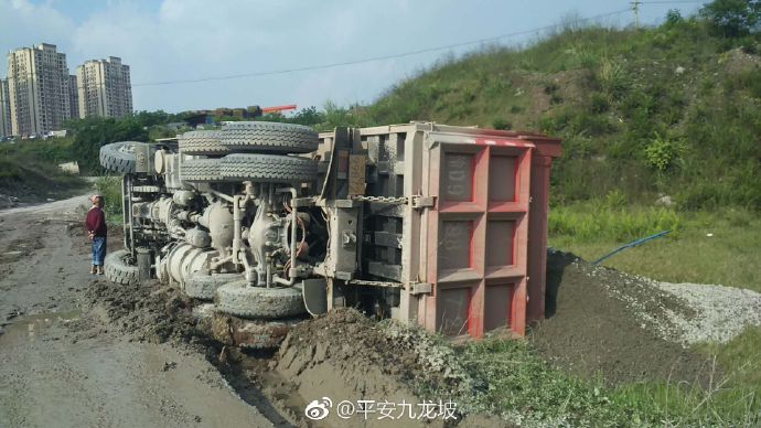 来自平安九龙坡官微的消息:4月26日下午,在九龙坡陶家公租房附近,一辆大货车发生侧翻,车上载的河沙洒落一地。原来都是超载运输惹得祸。