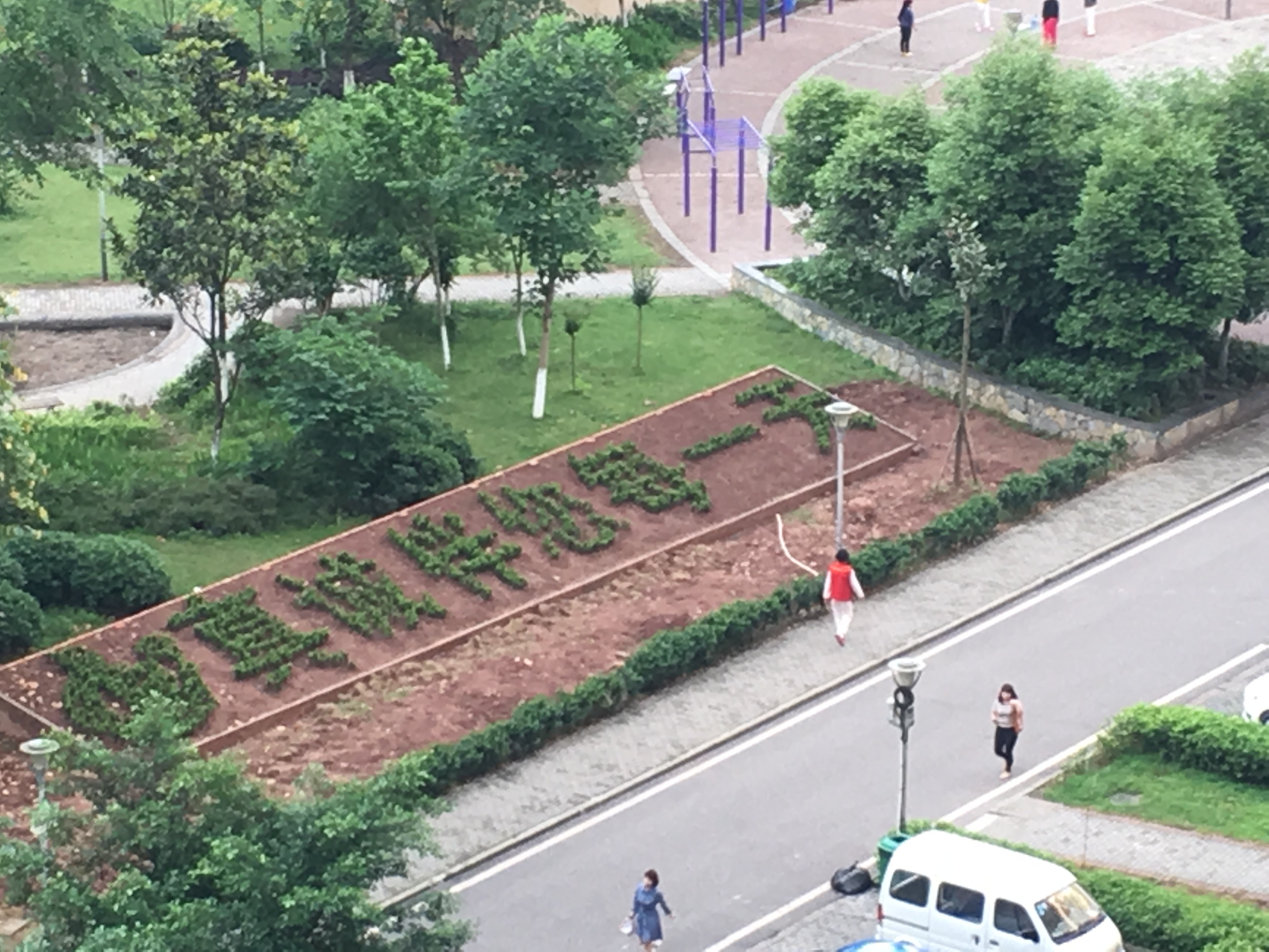 2018年5月7日,家住重庆巴南区云锦路的秦小姐,早早起床,准备到阳台做做操,活动下筋骨。谁知目光却被小区中庭绿化带上的草坪所吸引。