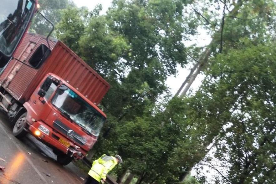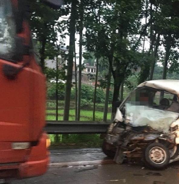 面包车与大货车相撞 车头面目前非