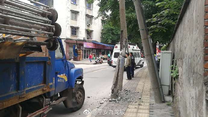 来自平安九龙坡官微的消息:5月10日下午,九龙坡西彭镇元明街,一辆农用货车因超宽撞上了路边的电线杆,导致电缆被拉断。