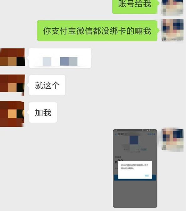黄小姐按照号码输入,准备转账时,却发现对方已将自己添加至黑名单,不能向对方转账,黄小姐十分生气,立马将图发给同学看。