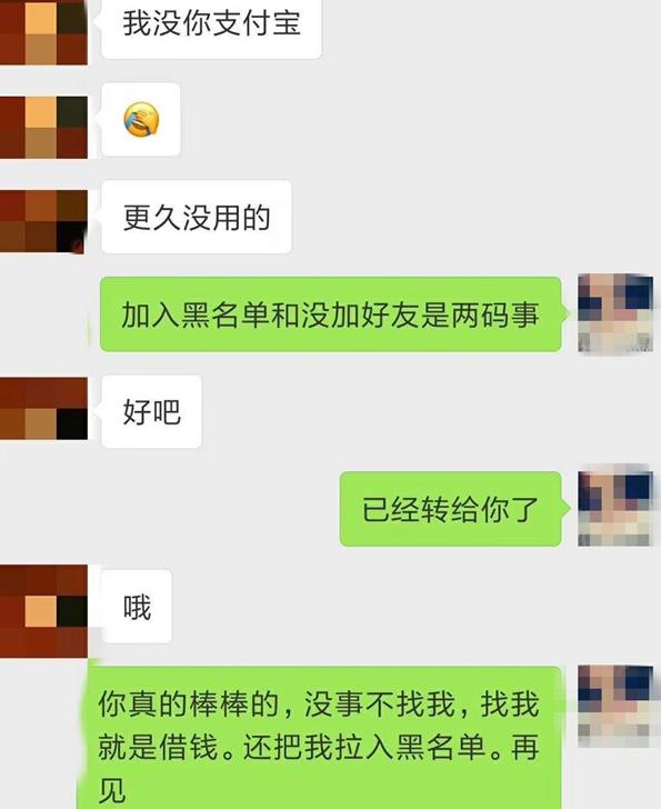 高中同学许久未联系要借钱 转账时发现被对方拉黑