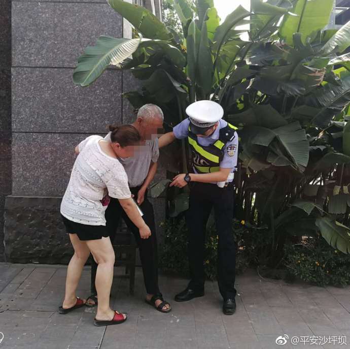 接警后,沙区110快处队民警迅速赶到现场找到了陈爷爷,将他扶至一旁的椅子上休息,发现老人左侧膝盖有轻微擦痕,为其安全着想,民警及时联系到老人女儿并将他送至医院救治。