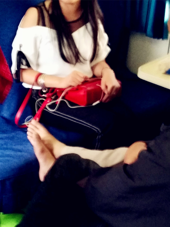 发布时间:2018-05-28 16:56:152018年5月27日,有网友爆料,在重庆北开往汕头方向的列车上,在一节车厢内,看见了这样的一幕,一位女子光着脚搭在对面座位上。