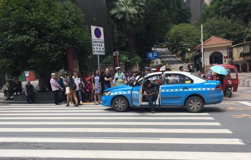 斑马线上出事故 摩托被出租撞“飞”
