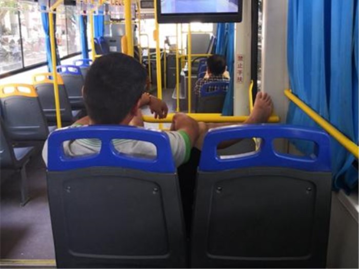 男子乘公交坐姿太霸气 将腿搭在扶手上