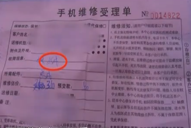 老人换手机屏幕发现是旧的 维修店老板拒退定金