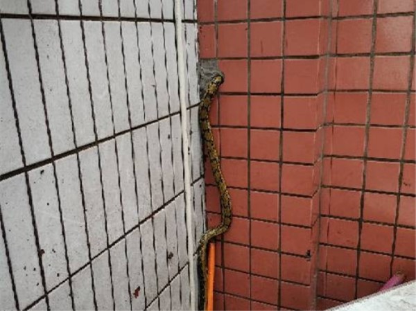 这条蛇看起来还是很吓人,小编在此提醒广大市民:夏季来临,有绿植的地方容易有虫或蛇出没,大家外出要多留心,避免被咬伤。看到蛇后,一定要保持镇定,以缓慢的步伐慢慢地后退走远即可。