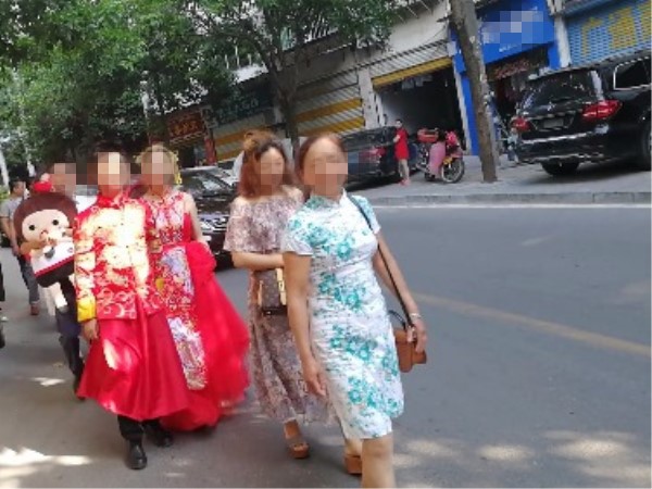 从网友拍摄的图片来看:接亲人员有着明确的分工,并连成一排跟着队伍走,婚车也跟随着队伍一直前进。