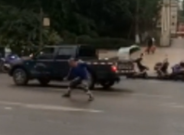 发布时间:2018-06-21 13:29:472018年6月19日,重庆永川,有网友爆料,在兴龙湖协信星光时代广场附近路边,看到一位中年男子在马路中央练太极,十分危险。