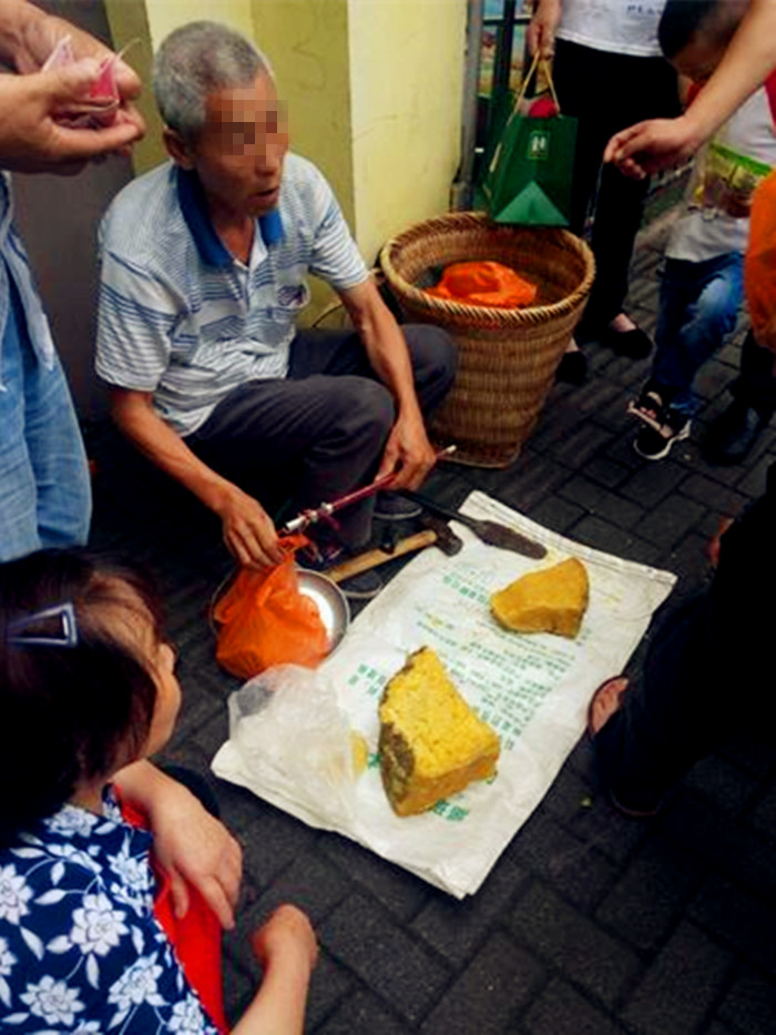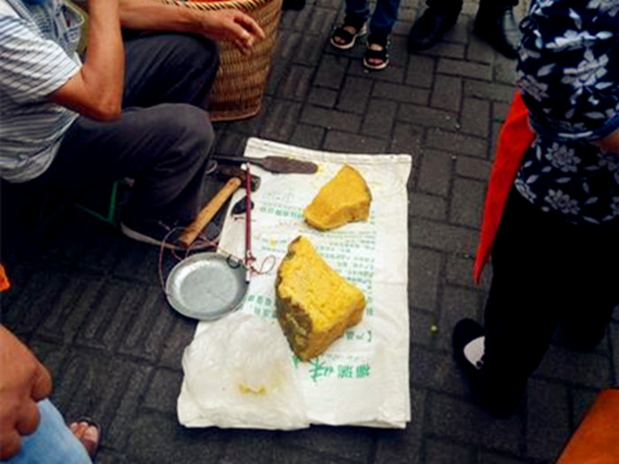 突然人群里有个男子出来说,这个东西是假的,蜂糖根本不是这个东西。没一会儿,卖“悬蜂糖”的男子就匆匆把摊给收了,围观的人也就跟着散开了。