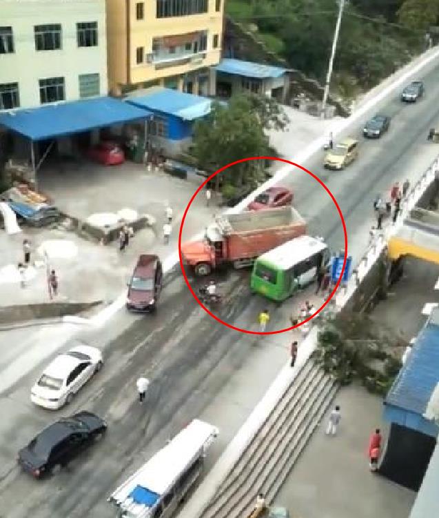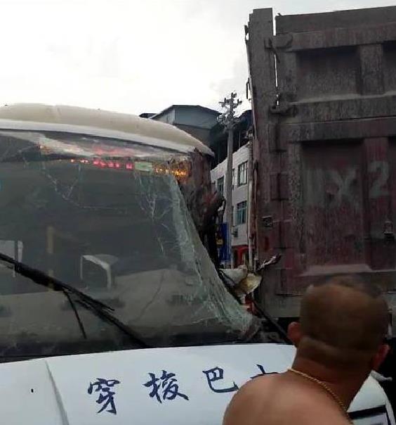 小巴士与大货车相撞 驾驶室都快没了