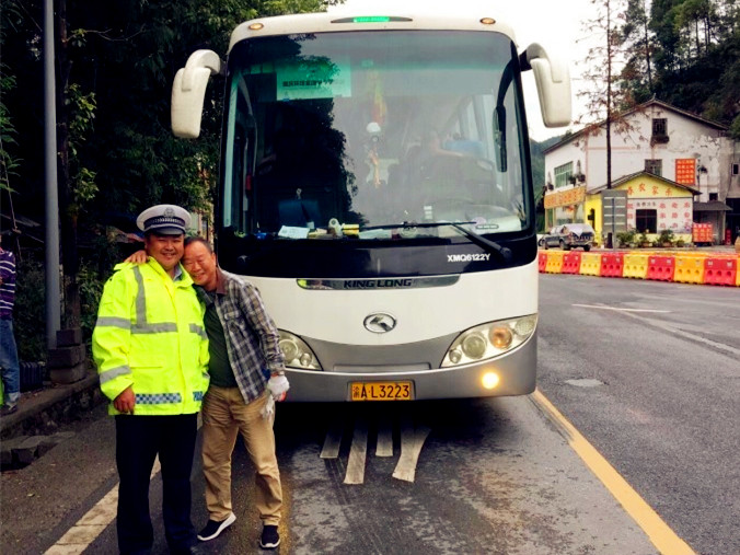大巴司机激动邀请民警合影:七年了,感谢你们每次的帮助!