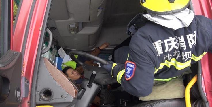 货车侧翻驾驶员被困驾驶室 沙坪坝消防成功救出