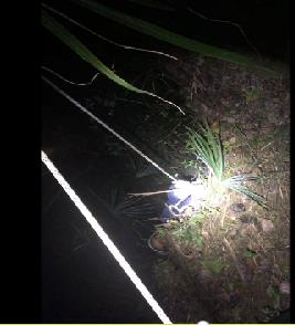 消防官兵根据现场情况迅速研究救援方案,展开救援行动。副大队长陈宇决定利用天坑洞口后方一颗大树作为固定点,将排长范博文放下深坑探明情况,并对查看被困人员伤势进行救援,随着绳子一点一点的放下天坑,排长范博文到达坑底后向陈宇副大队长反馈被困者情况,被困者头部、手臂均有明显外伤,但还有行动能力。