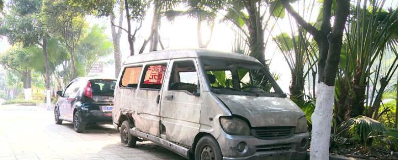 “僵尸”面包车霸占人行道 张师傅每天帮忙打扫