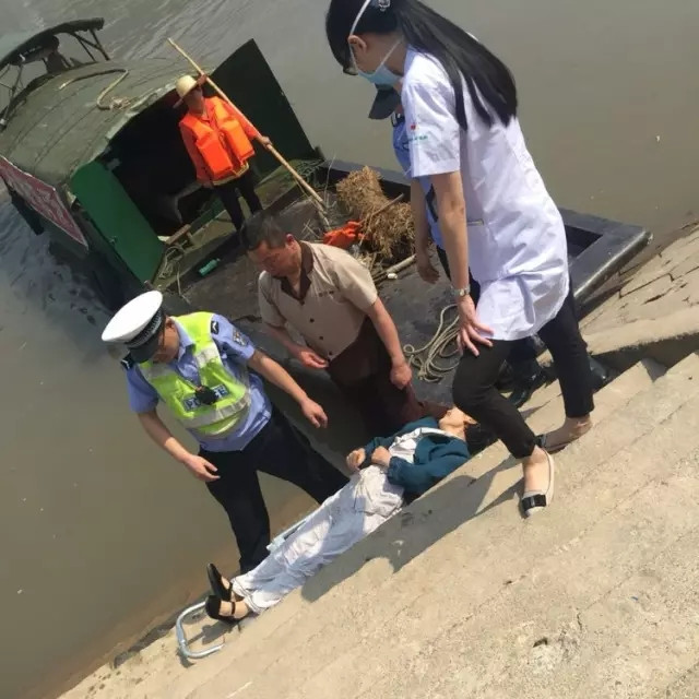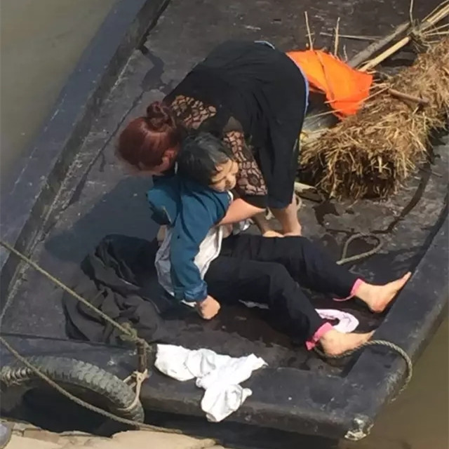 大家赶紧把老年人抬到岸边,涪州八号的一位女性工作人员帮老人换了干净衣服,老人不断的哭泣,全身发抖,也说不清楚自己为何落水。