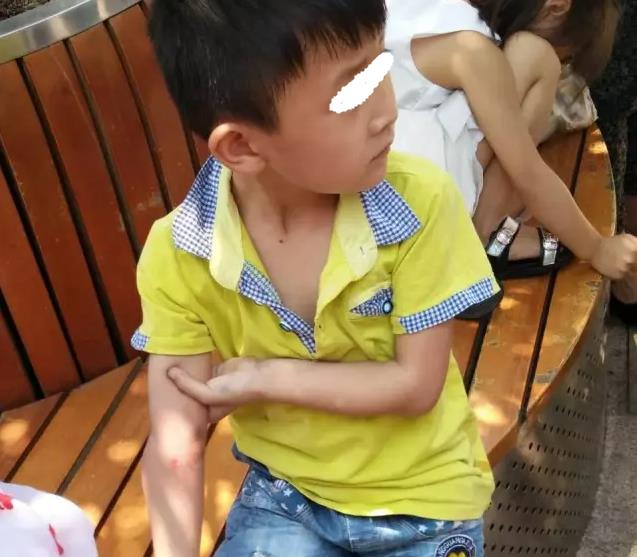 目击者称小孩手臂受伤,头部被摔,所幸的是并无什么大碍。