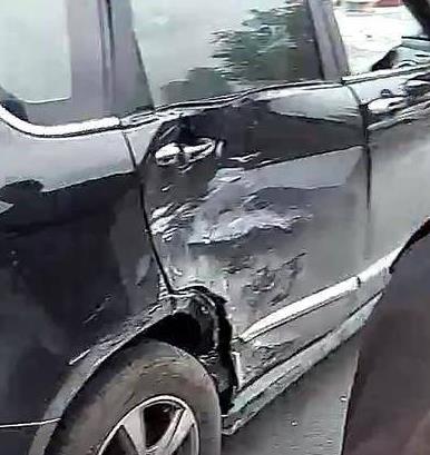这速度是有多快?小车被撞得原地打转还爆胎