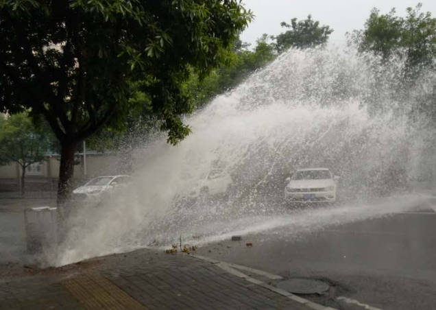 当爱车遭遇水管爆裂 美女司机有苦难言