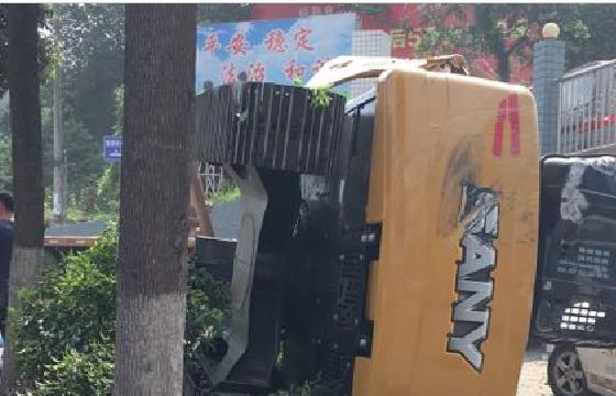 据王师傅讲述,当时平板车开得太快了,结果前面有减速带。平板车师傅慌了神,一个急刹一踩,车上的挖掘机就被甩到了路边。由于挖掘机下落时,前面的抓斗砸到了平板车驾驶室,师傅受伤不轻,已被送往中医院。