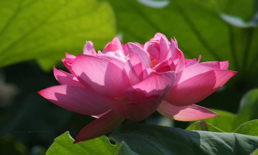 清晨的时候,一颗颗晶莹剔透的水珠,挂在荷叶上,荷花上,清风袭来,一阵阵淡淡的幽香拂面而来,令人心旷神怡;当阳光火热一些的时候,荷花会变得愈发光彩照人,它总是不会疲惫,一直亭亭玉立着,宛如仙子。站在远处眺望,大片大片的荷花显得十分壮观十分妖娆,带来的视觉享受无可比拟。