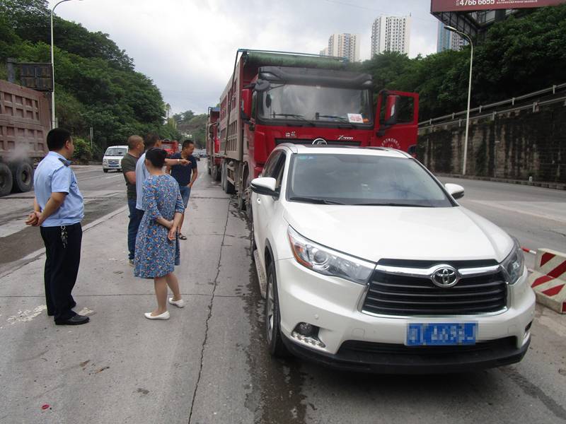 6月7日上午,在九龙坡一收费站发生一起货车追尾小车的一般交通事故,货车追尾小车。货车司机立即下车查看情况并承认是自己的全责,但是小车驾驶员觉得自己的爱车才买两个月不到,很是心痛,越想心里越气愤,直接对准货车司机脸上就是一拳。