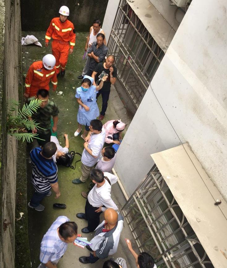 女子骑电动车翻下三米高路坎 下面全是水泥地板