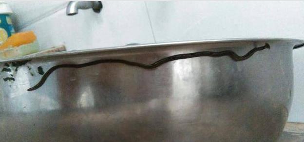 女子在家洗菜 盆子里爬出一条“天蛇”