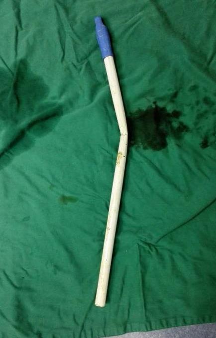 最终罗主任将两条手术10号线栓在撮箕把的塑料孔里,同时在线上绑上引流管,将异物出去后体内出现的渗液引流出去,避免病人术后的感染等,引流管上又缝了医用止血纱布,防止取出管子时压迫减少造成的出血。“即使在拉出异物时剥离,还可以从顶端将异物取出。所以给病人造成的创伤是最小的,手术过程我们也是进行了半个小时左右,加上麻醉构成等两个小时结束全部工作。目前病人身体的恢复情况也是很不错的。”罗主任说。