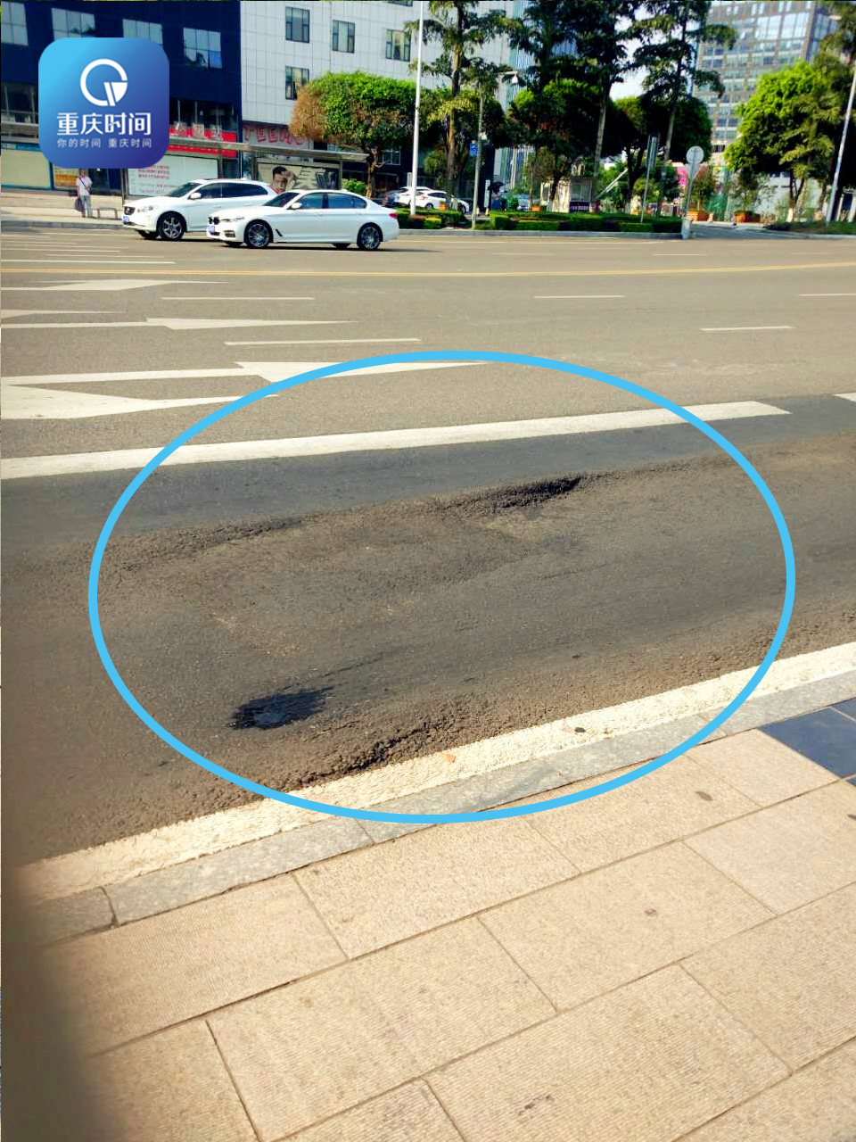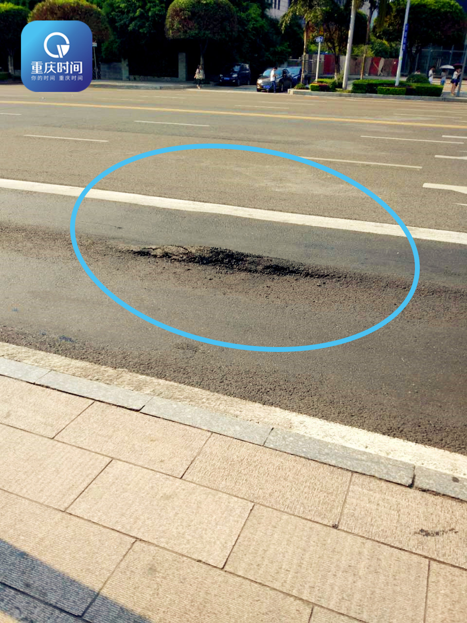 “嘭”一声炸响 公交车道现凹陷