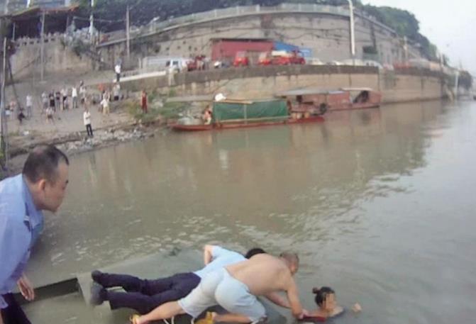 8月1日凌晨,有市民在江津通泰门码头看见一个人头在江面上浮动,东城派出所值班民警接警后迅速赶到现场展开营救。民警将救生圈精准地抛到溺水女子身边,但该女子并不抱住救生圈自救,而是不为所动。因此部分民警选择乘坐小铁皮船靠近女子实施救援。趁女子不注意,民警和船工一把拉住女子的衣服,但该女子执意想挣脱,似乎并不愿意被救。大家一齐使劲儿,终于把女孩救上了船。