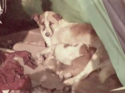 2007年夏天,“花花”生了四只小狗崽。当时,因长江涨水,它的孩子被困孤岛。