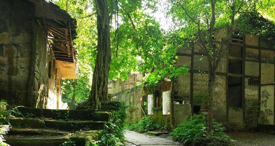 这座小镇位于重庆市北碚区金刚碑,是一个原汁原味的巴渝古村落,在缙云山脚,靠嘉陵江边。纯绿色的植物爬上了小镇的墙壁、屋顶、树梢,布满了小镇的道路、坡坎,甚至挤满了石缝,整个小镇都被纯绿色的植物覆盖,显得格外清凉。