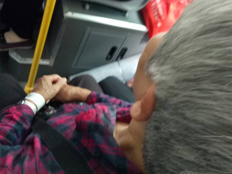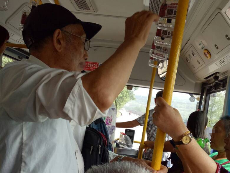 9月24日,綦江的李女士乘坐508公交车,在石角站的时候,一位满头银发,戴着帽子和老花镜的八旬老大爷上车,当时车上还有空位他便坐了下来。