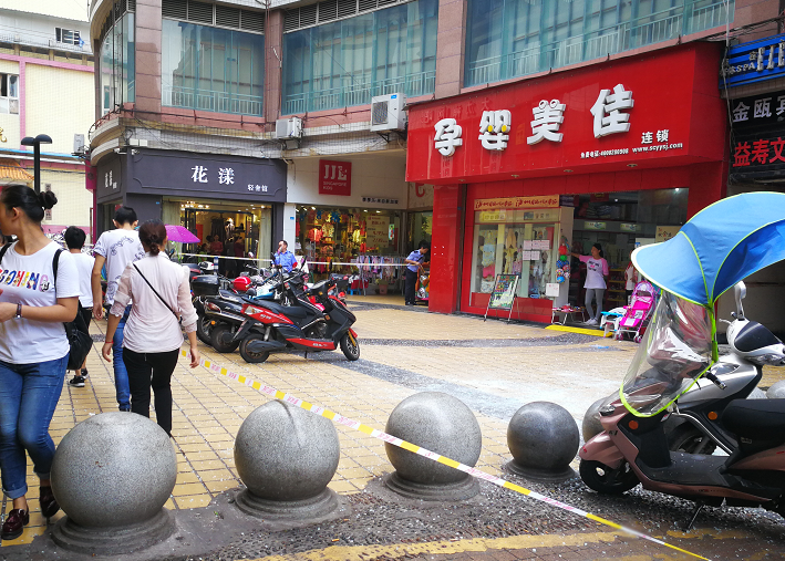 26日下午15点左右,重庆璧山新世纪旁。正在逛街的张女士(化名)突然听到身后传来一声巨响。 “哐铛”一声后,地上散落一堆玻璃渣子。