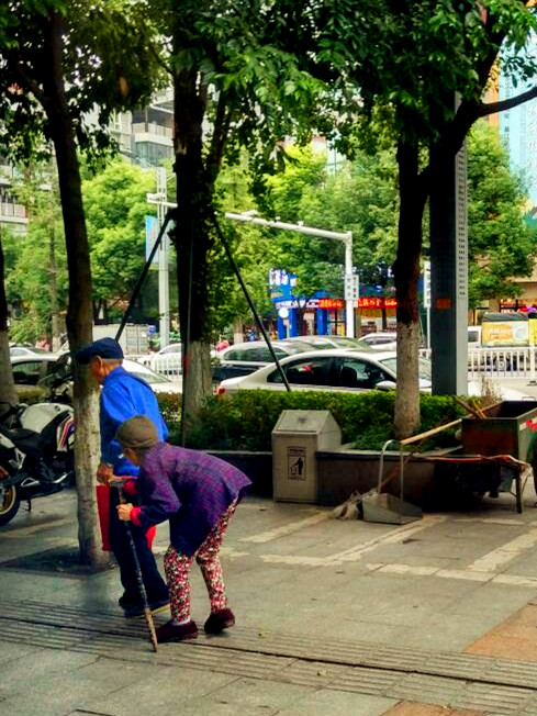 发布时间:2017-10-03 17:39:212017年10月1日,重庆綦江街头出现了一对老夫妻,大爷拄着拐杖拎着手提袋,牵着一个老太一步一步地走着。
