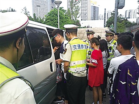 9座面包车挤了17人 一车人全是学生
