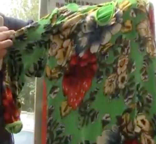 周大姐介绍说,当时是在北碚的老城隧道附近定做了两件旗袍,一共花了900元钱。看着花花绿绿的十分漂亮,本来是打算定做出来平时走亲戚的时候穿一下。可这衣服才穿一次就到处是破洞,袖子,腋下都是几个大洞。